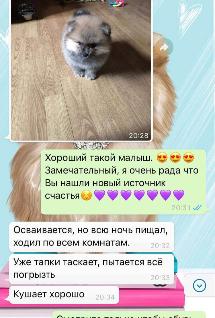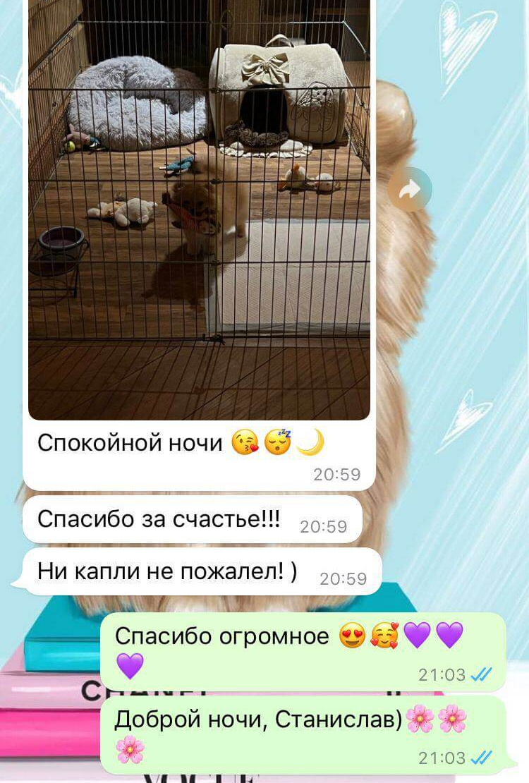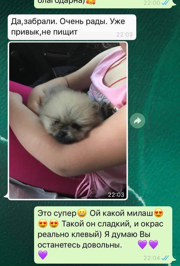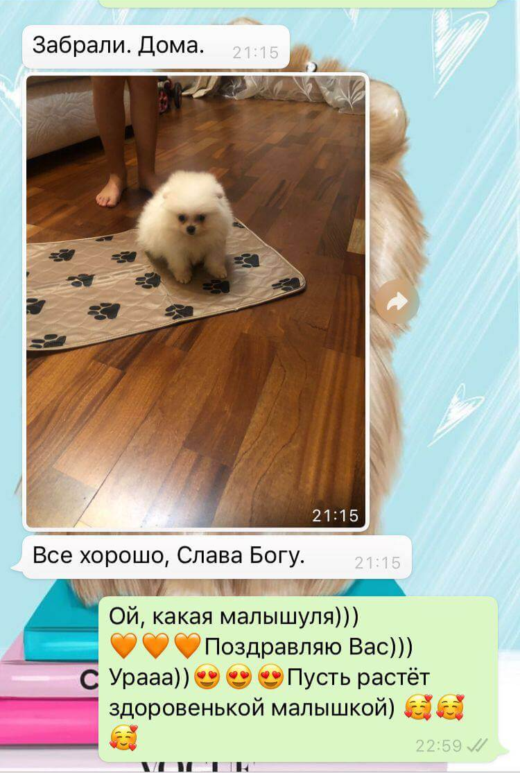 Долго искала щенка породы шпиц и 16 марта узнала о питомнике. Связалась с Антоном, он отправил видео щенков и предложил приехать посмотреть их в живую .В тот же день мы забрали нашу малышку!