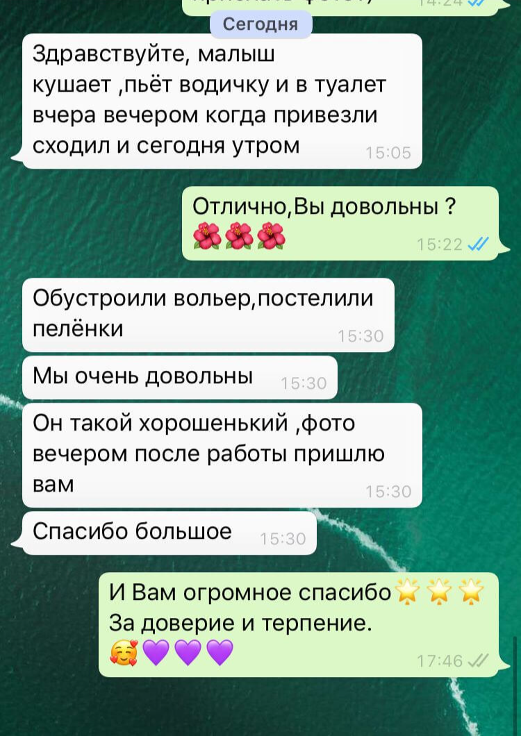 все прошло замечательно) мы искали собачку редкого окраса в нашу семью. Все рассказали, показали и помогли определится с выбором. Документы, чип все предоставили👌